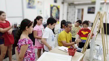 Oferecemos oficinas de arte para crianças, onde os pequenos artistas podem explorar sua criatividade através de atividades como desenho, pintura e outras artes visuais. Esses momentos são gratificantes, permitindo que as crianças se expressem artisticamente enquanto se desconectam de celulares e tablets.