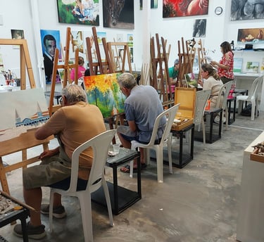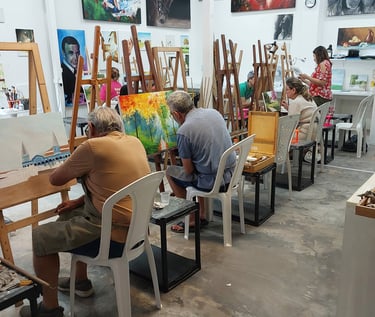 Oferecemos um ambiente acolhedor, onde os alunos se sentem à vontade para experimentar diferentes técnicas, como pintura em tela e aquarela, sempre com o apoio de instrutores qualificados.